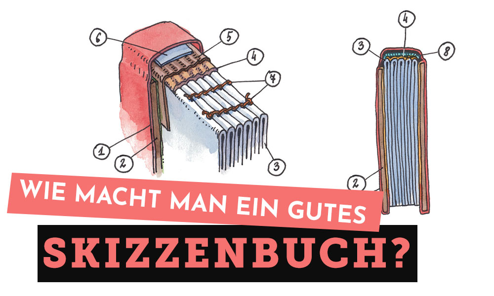 Sehr oft werde ich gefragt, wie Skizzenbücher aufgebaut sind. Auf den ersten Blick – wie in der untenstehenden Abbildung zu sehen – ähnelt der Aufbau eines Skizzenbuchs dem eines Buches. Tatsächlich werden die meisten handelsüblichen Skizzenbücher auf Produktionslinien für die Buchherstellung gefertigt. In Wirklichkeit erfüllt ein Skizzenbuch jedoch eine ganz andere Aufgabe. Deshalb muss es anders gefertigt werden, damit es seine Funktion wirklich erfüllt. Erfahren Sie hier, wie.