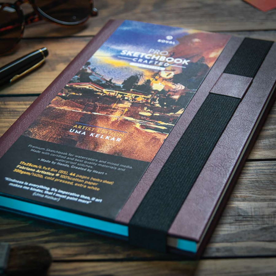 Uma Kelkar Signature Skizzenbuch, gebunden in hochwertigem Kunstleder.