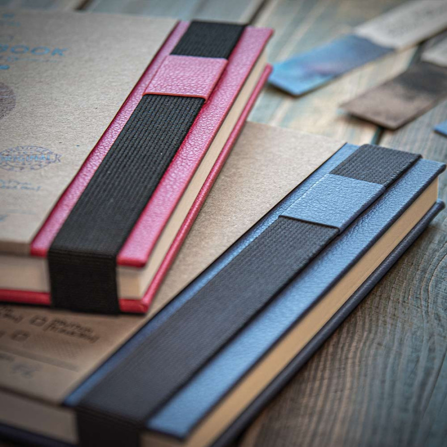Eine einfache, aber geniale Lösung: Das dicke, geflochtene Gummiband leiert nicht aus und nutzt sich nicht so ab wie herkömmliche Bänder. Es schützt das Skizzenbuch vor unbeabsichtigtem Öffnen und ermöglicht zugleich, es zusammen mit Stiften und Werkzeugen zu fixieren, die Sie stets griffbereit haben.