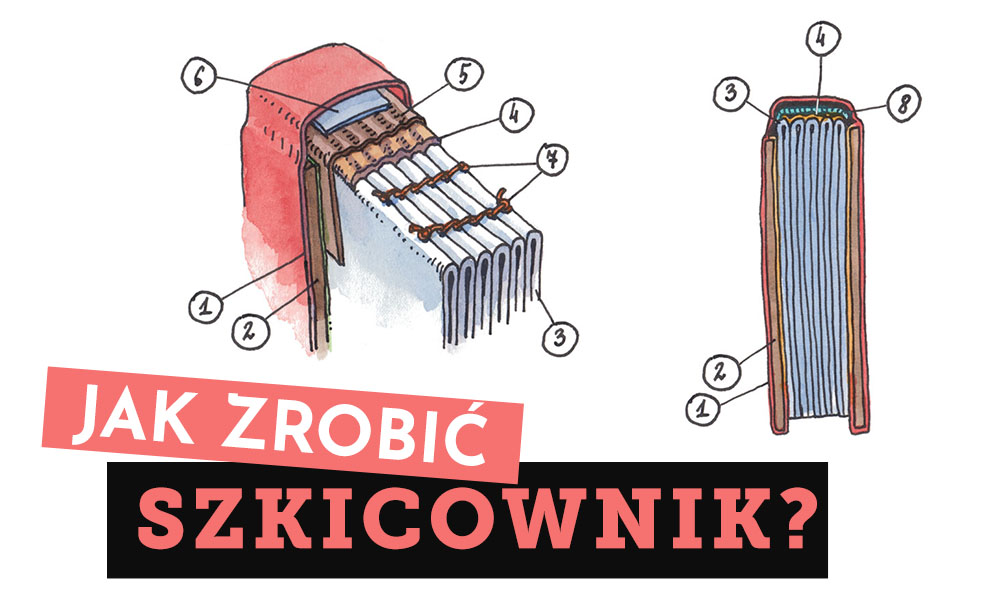 Bardzo często słyszę pytanie o to jak są zbudowane szkicowniki. Na pierwszy rzut oka - jak widać na poniższej ilustracji - budowa szkicownika jest podobna do budowy książki. Ba, większość szkicowników sklepowych produkowanych jest na liniach produkcyjnych do składania książek. Jednak w rzeczywistości szkicownik pełni zupełnie inną rolę. Z tego powodu, aby mógł spełniać swoje zadanie należycie, należy zrobić go inaczej. Zobacz jak.